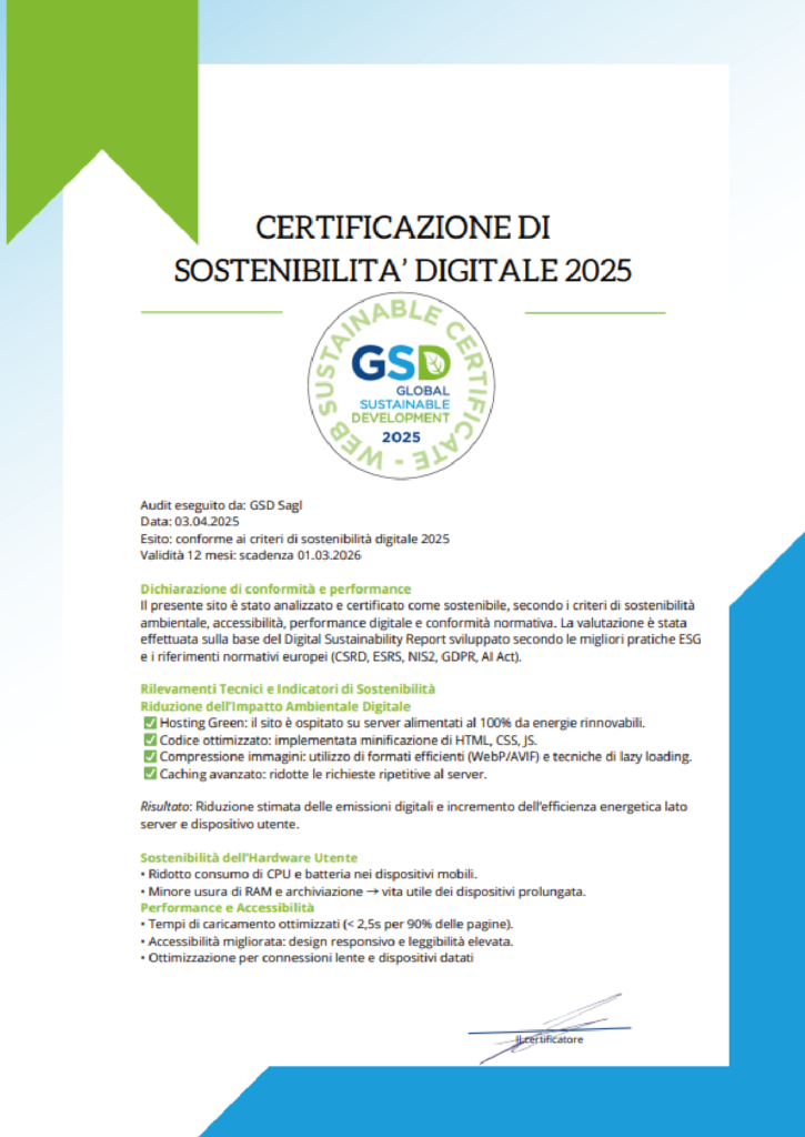 GSD supporta le imprese nella conformità alle normative ambientali offrendo un’ampia gamma di servizi, tra cui la definizione di obiettivi ESG, la redazione di bilanci di sostenibilità, il report GHG e il calcolo delle emissioni.